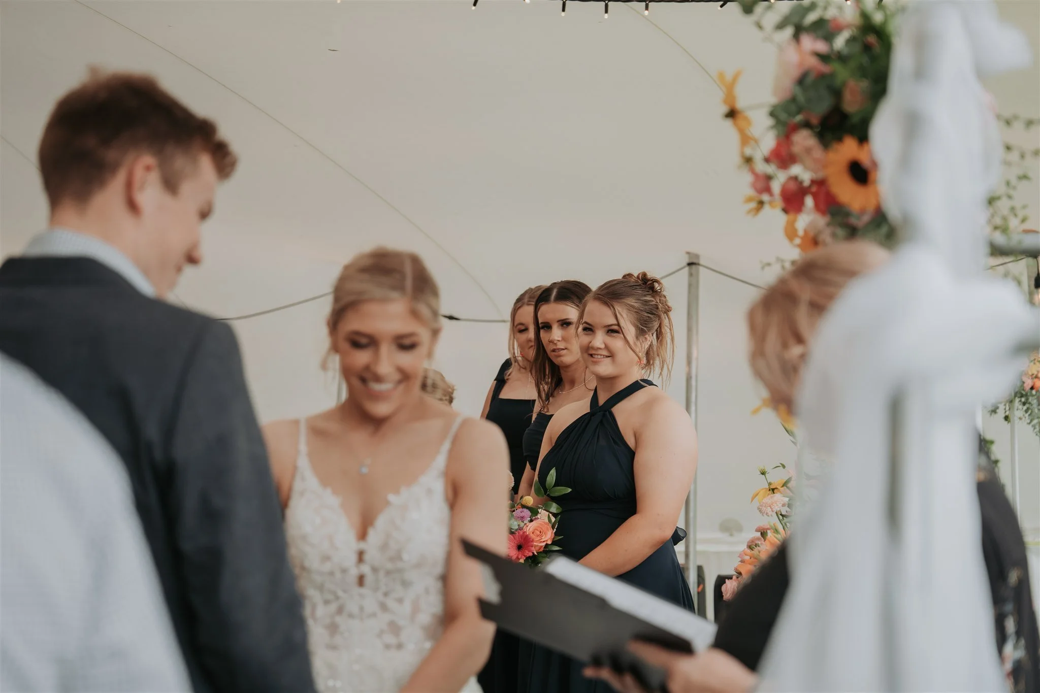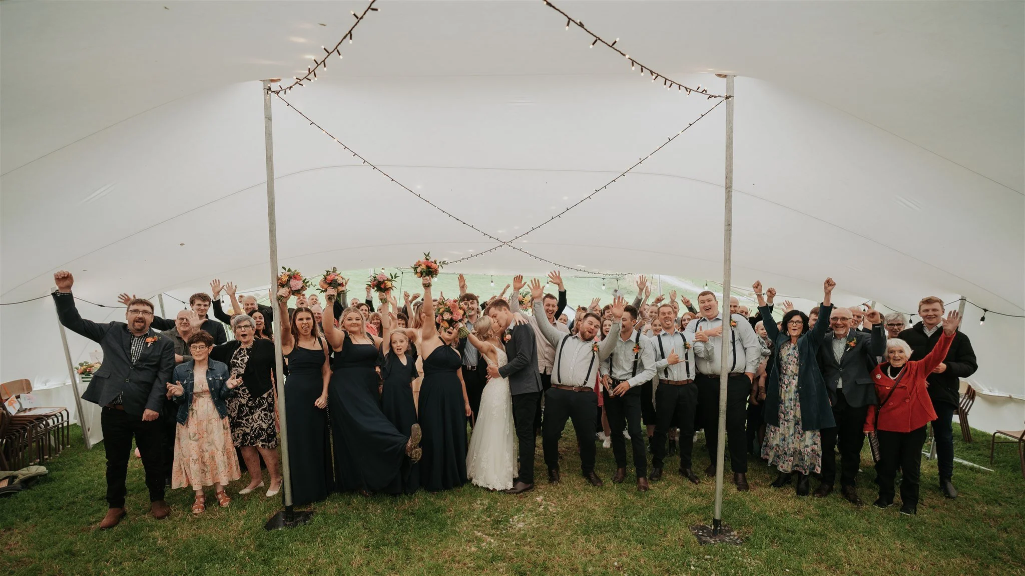 The ceremony was held inside a stretch tent down in the lower paddock. Heaters and soft lighting created a warm, intimate space. Guests sat facing out toward the hills, with Molly and James saying their vows surrounded by the land that means so much to them. We captured candid moments with their guests and finished with family group photos looking out from the marquee.